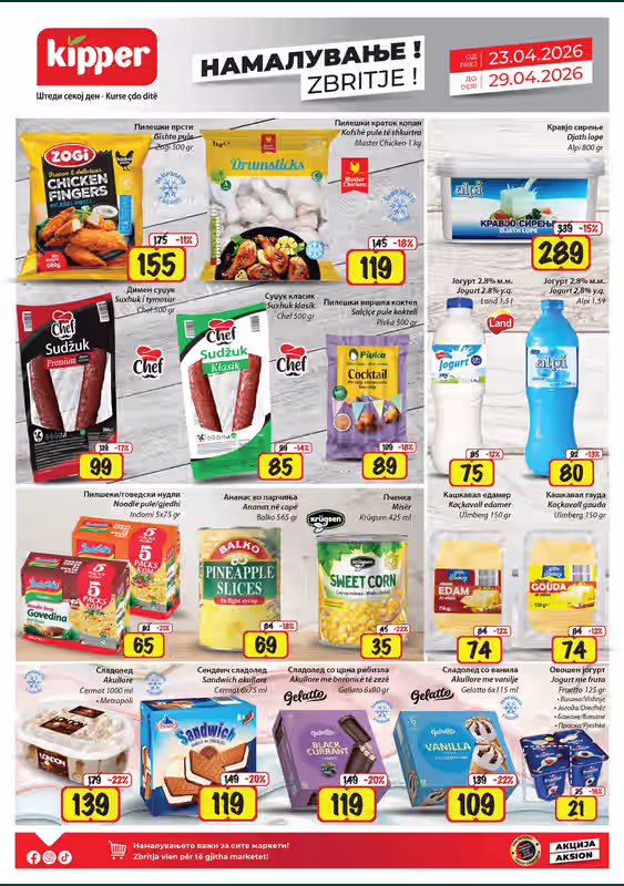 Прегледај ги најновите акции од Киппер за периодот 23.04.2026 – 29.04.2026. Следи попусти и тековни понуди на Ценотека.