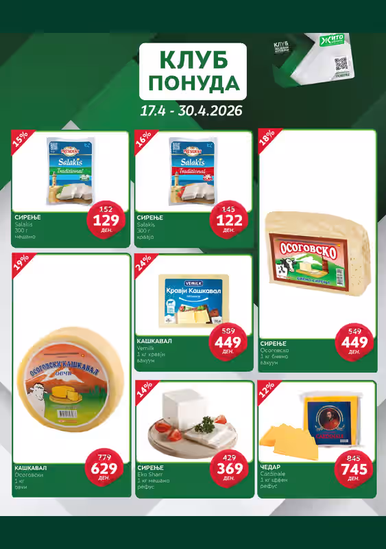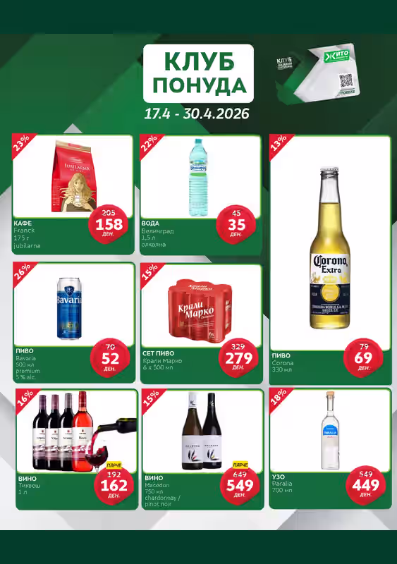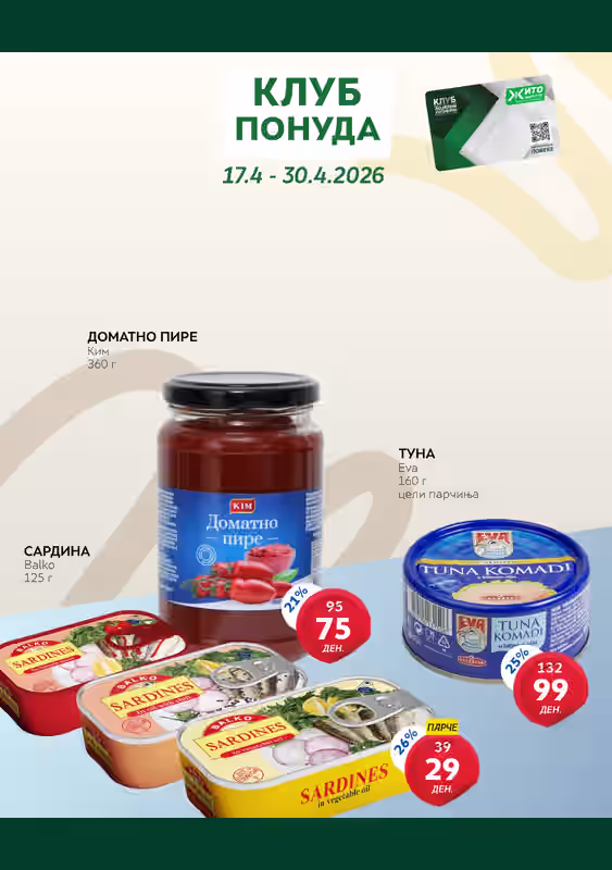 Прегледај ги најновите акции од Жито за периодот 17.04.2026 – 30.04.2026. Следи попусти и тековни понуди на Ценотека.