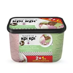 Kri Kri Heartmade Сладолед од ванила, какао, јагода и ф’стак 3л (Замрзнато)